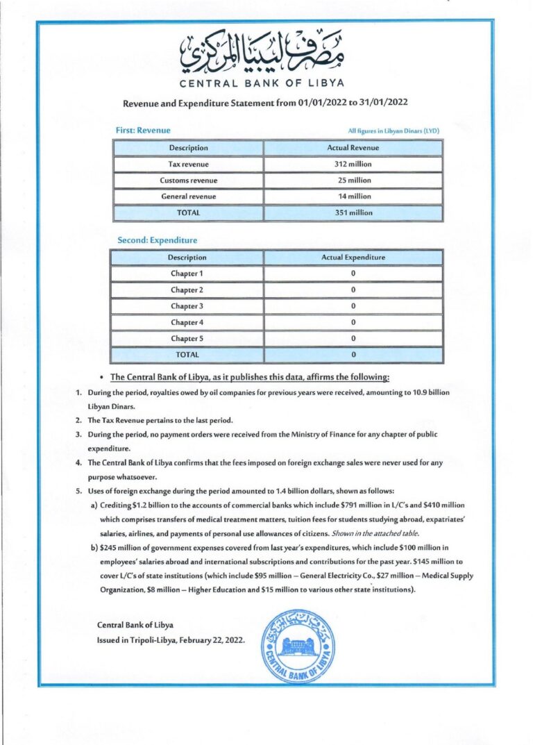 CBL revenue and expenditure statement (January 2022)